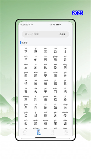 练字App是一款专为书法爱好者设计的智能练字软件,支持用户随时随地通过手机进行描摹练字,无需依赖传统书法练字帖。该软件结合笔锋模拟、动态笔画和智能纠错等先进技术,帮助用户提升书写水平。无论是初学者还是资深书法爱好者,都能通过丰富的字库资源、个性化课程和实时反馈系统,感受书法之美,轻松掌握楷书、行书、草书等多种书体。