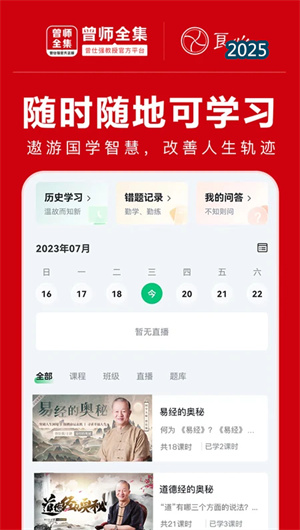 App核心功能是提供了一个经过专业化知识梳理的课程中心。所有内容均获得官方独家授权,确保版权清晰、内容零删减,百分百保留曾师原貌。平台采用多维课程分类系统,用户可按专题(如管理、人生、易经)、系列或难度进行垂直内容检索。每一节高清视频课程都配有完整的课程简介与学习目标,并支持生成个人学习足迹,帮助用户系统性地构建起结构化的国学知识框架,避免碎片化学习,从“知道”走向“悟道”。