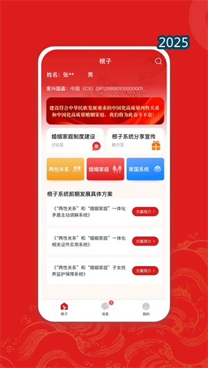 根子App通过系统化的功能设计、特色化的服务模式和创新性的技术应用,构建了全方位的婚姻家庭建设平台。我们坚信,在党的领导下,通过持续完善根子系统,必将推动婚姻家庭制度建设迈向新高度,为夯实家国思想、凝聚民族精神力量作出积极贡献。让我们携手共建健康和谐的两性关系和婚姻家庭环境,共同见证华夏文明的伟大复兴。