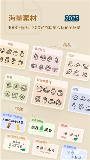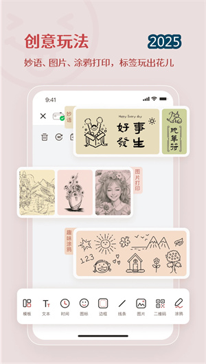 2. 臣小印App强调个性化与创意表达,提供丰富的字体库、符号库和边框库,用户可自由组合这些元素,打造独一无二的标签设计。该特色包括涂鸦绘制和图标嵌入工具,支持手写输入和图片上传,让标签充满艺术感和实用性。通过编辑历史记录和模板自定义功能,用户可以随时调整和重用设计,满足不断变化的收纳需求。社区灵感库的集成进一步扩展了创意边界,用户可从其他作品中汲取灵感,提升自身设计水平。这一特色不仅鼓励用户发挥想象力,还通过直观的界面设计降低使用门槛,使臣小印成为表达个人风格的理想平台,增强用户的情感连接和满意度。