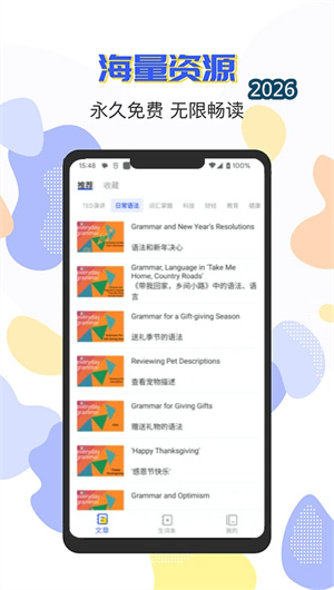 2. 全免费的高质量内容生态与考试赋能体系构成了强大的用户吸引力。蒙哥承诺核心功能与内容永久免费,其资源库持续更新,紧密覆盖中考、高考、四六级、托福雅思的核心词汇与高频话题。针对考试用户,APP设有专项突破板块,提供真题源句解析、高频考点词库及模拟阅读训练。对于希望提升日常交流能力的用户,平台则提供大量出国旅行与日常对话情景的实用阅读材料,确保各类用户都能找到提升靶点,真正实现“轻松完成英语作业与考试”的目标。