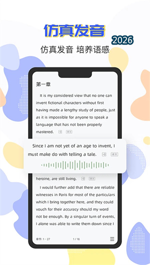 2. 自适应变速与发音训练系统提供了无与伦比的听力口语打磨体验。仿真朗读的语音合成质量近乎真人,用户可根据自身需求在英美发音间无缝切换。变速播放功能支持从0.5倍慢速到2.0倍速的无级调整,帮助用户逐步适应不同语速的真实语料,如常速VOA或快速的BBC新闻。结合口语跟读评分,用户能在一个闭环内完成从“听懂”到“模仿”再到“说准”的全过程,成为真正的“提升英语阅读听力口语利器”。