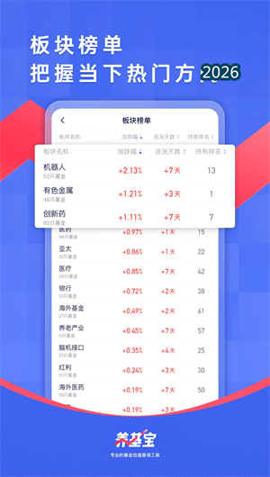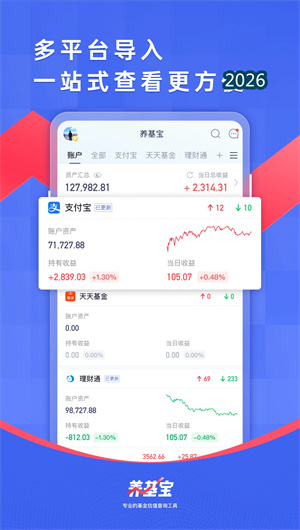养基宝APP是一款专为基金投资者设计的全平台持仓聚合分析工具,通过构建养基宝智能账本引擎与多源数据同步协议,实现了对支付宝、腾讯理财通、天天基金、雪球等主流基金交易平台的持仓信息一站式汇总管理。该应用以“简洁高效的养基账本小工具”为产品定位,旨在帮助投资者穿透多个账户壁垒,通过智能图片识别同步技术与持仓盈亏分析模型,提供清晰的资产全景视图与专业的绩效归因。养基宝严格遵守金融信息服务规范,作为工具平台不提供任何投资建议或金融服务,而是专注于通过多账户账本管理体系与基金盈亏周期报表等辅助功能,赋能投资者自主进行理性投资决策与风险识别,已累计服务超百万认真养基的用户群体。