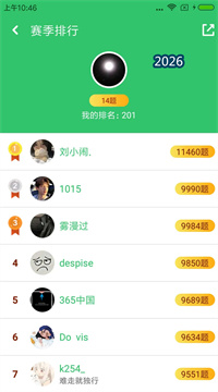 2、系统根据答对数量排名。每组答题都算。排名实时更新。激发用户竞争,鼓励学习。