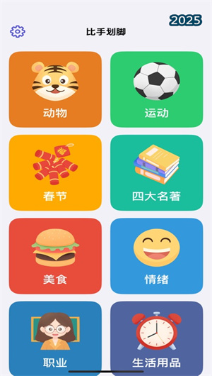 2. 丰富的题库内容:比手划脚App提供了包括动物、运动、春节、四大名著、美食、情绪、职业、生活用品等在内的多种题库,且题库会持续更新。这一特色确保了游戏的多样性和持久性,用户每次打开App都能发现新的挑战和乐趣,保持游戏的新鲜感和吸引力。