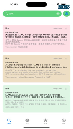 1. 多模型AI支持:AI术语助手App现已支持DeepSeek等先进的AI模型,未来将持续增加更多模型,为用户提供专业、准确的术语解释。每个AI模型都具有其独特优势,能够从不同角度解析复杂概念,帮助用户更全面地理解技术术语。这一功能不仅提升了术语解释的准确性,还增强了用户的学习效果。