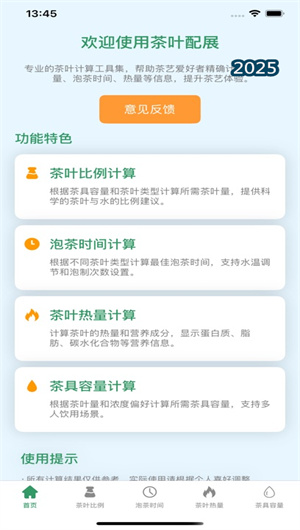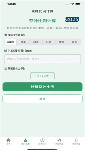 茶叶配比计算工具是一款基于茶叶科学的专业计算应用,深度融合茶艺理论与数据分析技术,通过智能算法构建精准的茶叶配比系统。该平台运用参数化模型驱动配比计算引擎,实现冲泡方案的智能化生成,依托云端同步保障数据持久化存储。茶叶配比计算工具整合了茶具容量计算、茶叶类型识别、泡茶时间推荐等核心模块,通过多维评估提供个性化服务,形成覆盖全流程的智能茶艺生态。软件采用模块化架构确保系统稳定性,配合数据加密技术保护用户隐私,为茶艺爱好者提供从配比计算到冲泡指导的一体化服务,真正实现科学泡茶的核心价值。