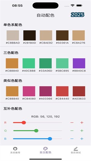 3. 专业配色方案生成功能基于彩隙的配色算法库,融合互补色规则、三角调和原理及分裂互补色策略,提供从基础单色到复杂多色调的自动化方案构建。该功能支持用户通过色彩平衡调节器动态调整色相、饱和度与明度参数,并实时预览配色效果在虚拟场景中的应用。方案库内置行业标准色彩体系,如Pantone色卡与RAL色彩编号,确保输出成果符合专业设计规范。此外,用户可自定义配色约束条件,如色彩对比度阈值与无障碍访问标准,系统会自动优化方案以满足可读性与视觉舒适度要求。