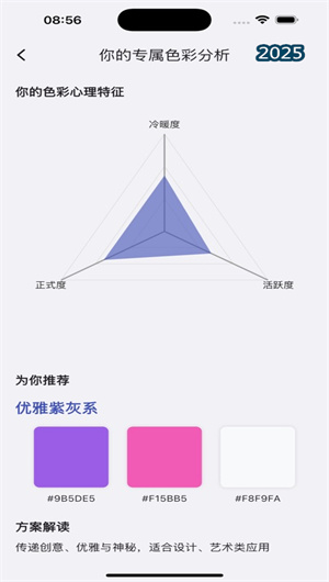 1. 彩隙的色彩心理测试功能通过多维色彩情感评估模型,结合用户行为数据与色彩偏好算法,生成个性化的色彩心理画像。该功能基于国际通用的色彩心理学理论框架,融入动态色彩刺激响应机制,测试结果将直接关联到专属配色方案的生成流程。用户可通过交互式色彩选择界面完成测试,系统会实时分析色彩感知数据并输出包含主色调、辅助色及强调色的完整配色档案,同时支持色彩情感标签的自动标注与历史记录追溯,确保每次测试都能反映最新的审美趋势与心理状态。