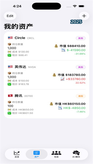 今天赚了么通过多市场接口整合技术,实现了对A股证券、港股通标的、美股ADR、基金净值、期货合约、加密货币、黄金价格及现金账户的实时行情同步。用户只需在资产录入界面输入各类资产的头寸信息,系统自动建立统一资产视图,将所有投资以标准化货币单位汇总展示。平台采用智能分类算法,将分散在不同市场和账户的资产按资产类别、市场分布、风险等级等维度自动归类,形成结构清晰的投资组合图谱。所有数据支持手动校准与自动更新双模式,确保总资产估值的实时准确,投资状况一目了然。