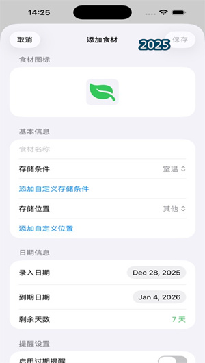 NaNa食材管理是一款专为现代家庭设计的智能食材管理应用,旨在通过数字化的手段帮助用户系统性地管理家庭食材库存。本应用以本地化数据存储为核心,结合智能周期提醒与可视化库存界面,构建了一个高效、私密且个性化的食材管理生态系统。用户可通过自定义存储条件和多维度分类体系,将家中所有食材信息进行结构化录入,并借助动态过期预警和智能消耗建议功能,显著降低食材浪费率,优化家庭食品开支。其设计哲学是“让每一份食材物尽其用”,通过技术赋能日常生活,实现从采购、存储到消耗的全流程精益化食材管控。