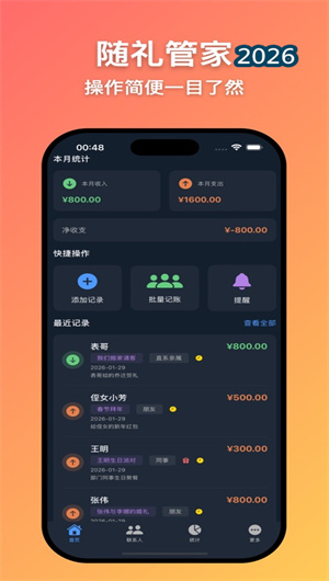 2. 联系人网络构建动态权重评级系统,基于交往频次、礼金数额、事件重要性等参数自动生成社交热力图谱。每个联系人独立配备往来明细档案,完整记录收礼、送礼、待办事项的全周期交互轨迹。系统内置的关系链分析工具可识别隐形社交圈层,当检测到礼仪缺口风险时,将启动关系维护提示引擎,推送个性化关怀建议。所有联系人数据均通过双向加密通道进行云端备份,支持生成可分享的礼仪电子名片。