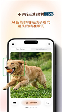 《宠咔》是一款用AI帮你在宠物对视瞬间自动按快门的宠物摄影软件,专治毛孩子一拍照就转头的毛病。