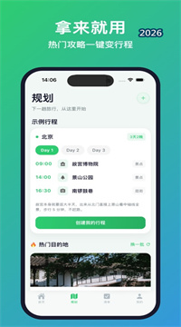 1、热门目的地一键导入现成行程,别人的七日精华你可以直接改成五日懒人版,删减后公里数、交通费、酒店价自动重新计算。